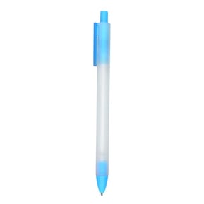 Bolígrafo de plástico con barril y clip traslúcido, con mecanismo de click.