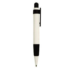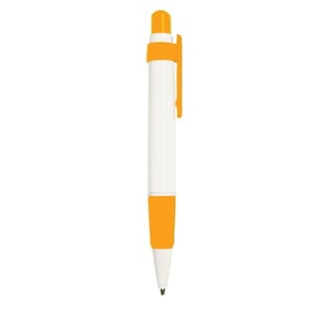 Bolígrafo de plástico con clip de color y grip de goma.