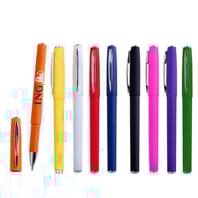 Bolígrafo con acabado rubber, tinta de gel y clip metálico.