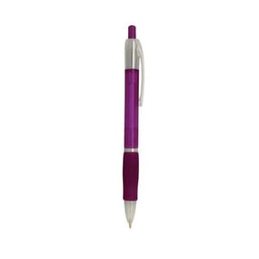 Bolígrafo de plástico con clip frozen y grip de goma.