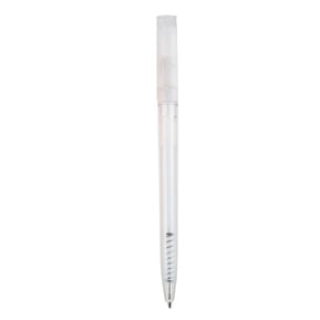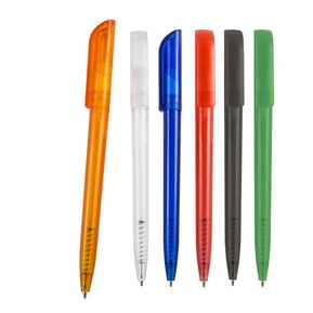 Bolígrafo de plástico traslúcido con mecanismo retráctil.