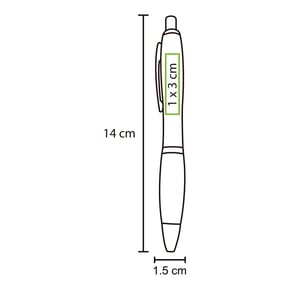 Bolígrafo de plástico retráctil. clip y punta metálicos y tinta de escritura negra.