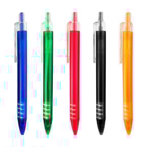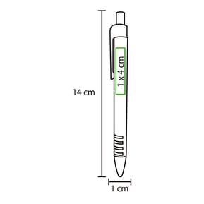 Bolígrafo de plástico retráctil y tinta de escritura negra.