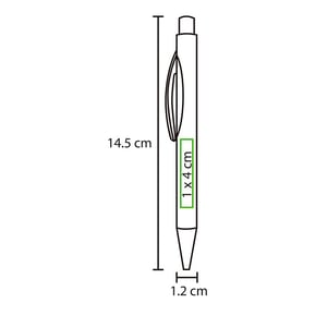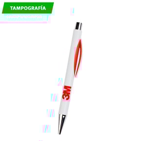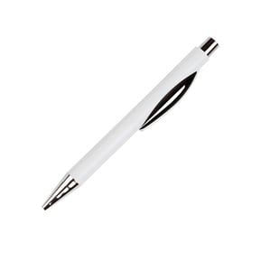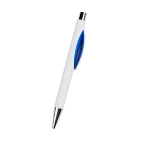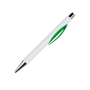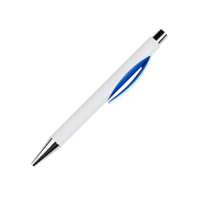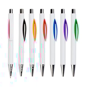 Bolígrafo de plástico retráctil, cuenta con detalles de color, clip y punta metálicos y tinta de escritura negra.