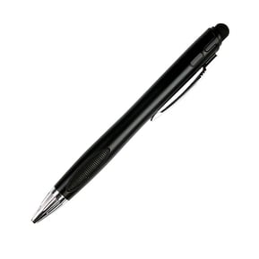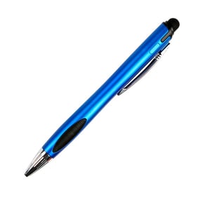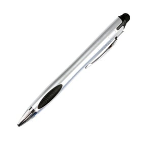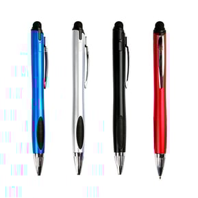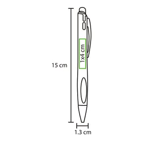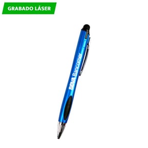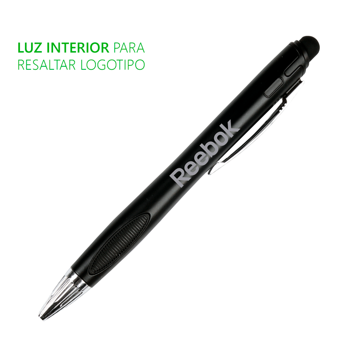 Bolígrafo de plástico con luz en interior para resaltar logotipo, detalles cromados puntero touch y grip negro.