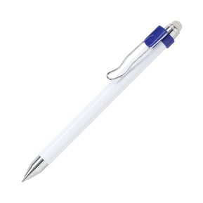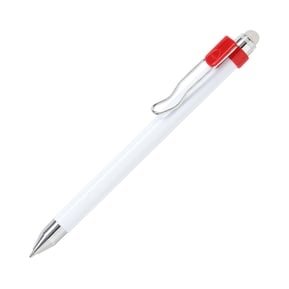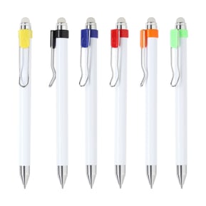Bolígrafo retráctil fabricado en ABS con detalles de color, detalles cromados y goma.