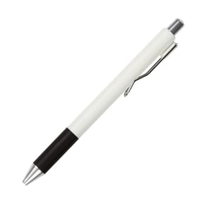 Bolígrafo retráctil fabricado en plástico ABS con clip cromado, punta con acabado metalizado y gris de color. Tinta de escritura de gel negra.