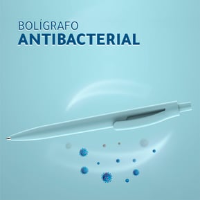 Bolígrafo retráctil fabricado en material Antibacterial con certificación ISO 22196 que inhibe hasta en un 99.9% el crecimiento y multiplicación de bacterias.
