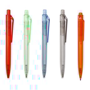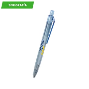 Bolígrafo translúcido retráctil fabricado en PET reciclado (RPET), con tinta de escritura negra.