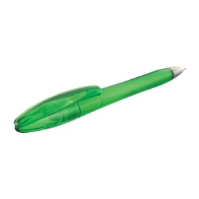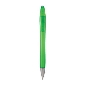 Bolígrafo plástico en color translúcido, sistema twist, tinta negra y detalle en punta en color plata