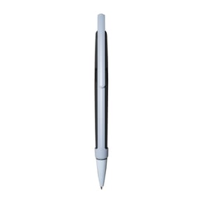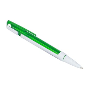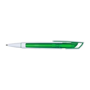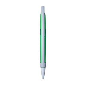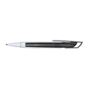 Bolígrafo plástico blanco con detalles en color translúcido, tinta negra y sistema push