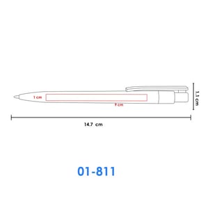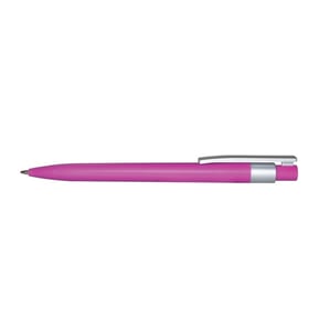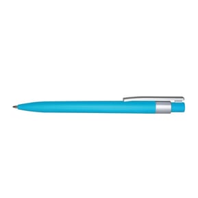 Bolígrafo de color con detalles en color plata, tinta negra, sistema push.