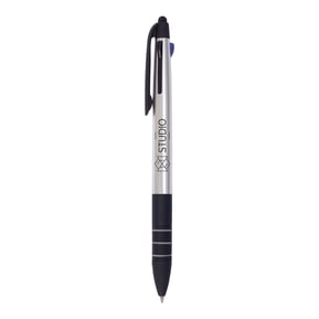 Bolígrafo de plástico con apariencia metálica.